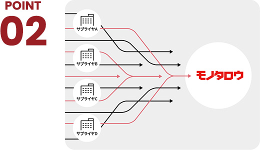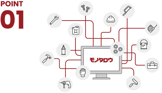 ロングテール品に特化したラインナップによりモノタロウ1つで間接材サプライヤーを集約いたします。