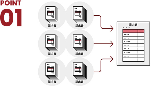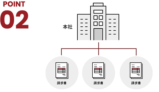 店舗や工場現場など、指定した請求単位で柔軟な請求書のとりまとめが可能。企業様の実現したい請求の運用に柔軟に対応いたします。