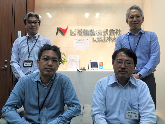 西松建設株式会社西松建設株式会社 関東土木支社 現場工務革新センター(左から) グループ2グループ長:高橋 英児様、グループ1グループ長:梅原 清様、グループ3グループ長:吉川 健一様、グループ4グループ長:嶋貫 芳彦様