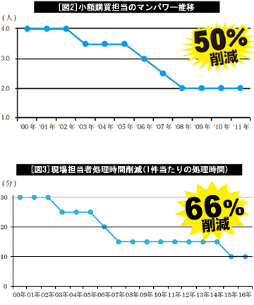 また、小額品購買に関しても、購買担当が一日一件の見積もり検討を行うことを目標とし、その結果、年間で数千万円のコスト削減に成功するなど、着実に効果を出しています。