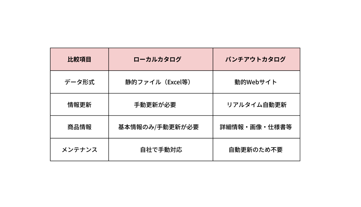 購買管理システムで使用されるカタログには、パンチアウトカタログとローカルカタログの2種類があります。ここでは、ローカルカタログとパンチアウトカタログの違いを見ていきましょう。