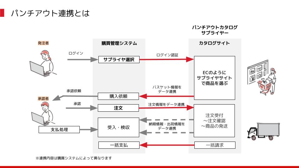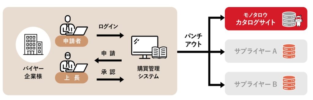 購買管理システムによって、パンチアウト連携の仕様や、システム側に支払う費用感が異なりますので、事前に確認が必要です。