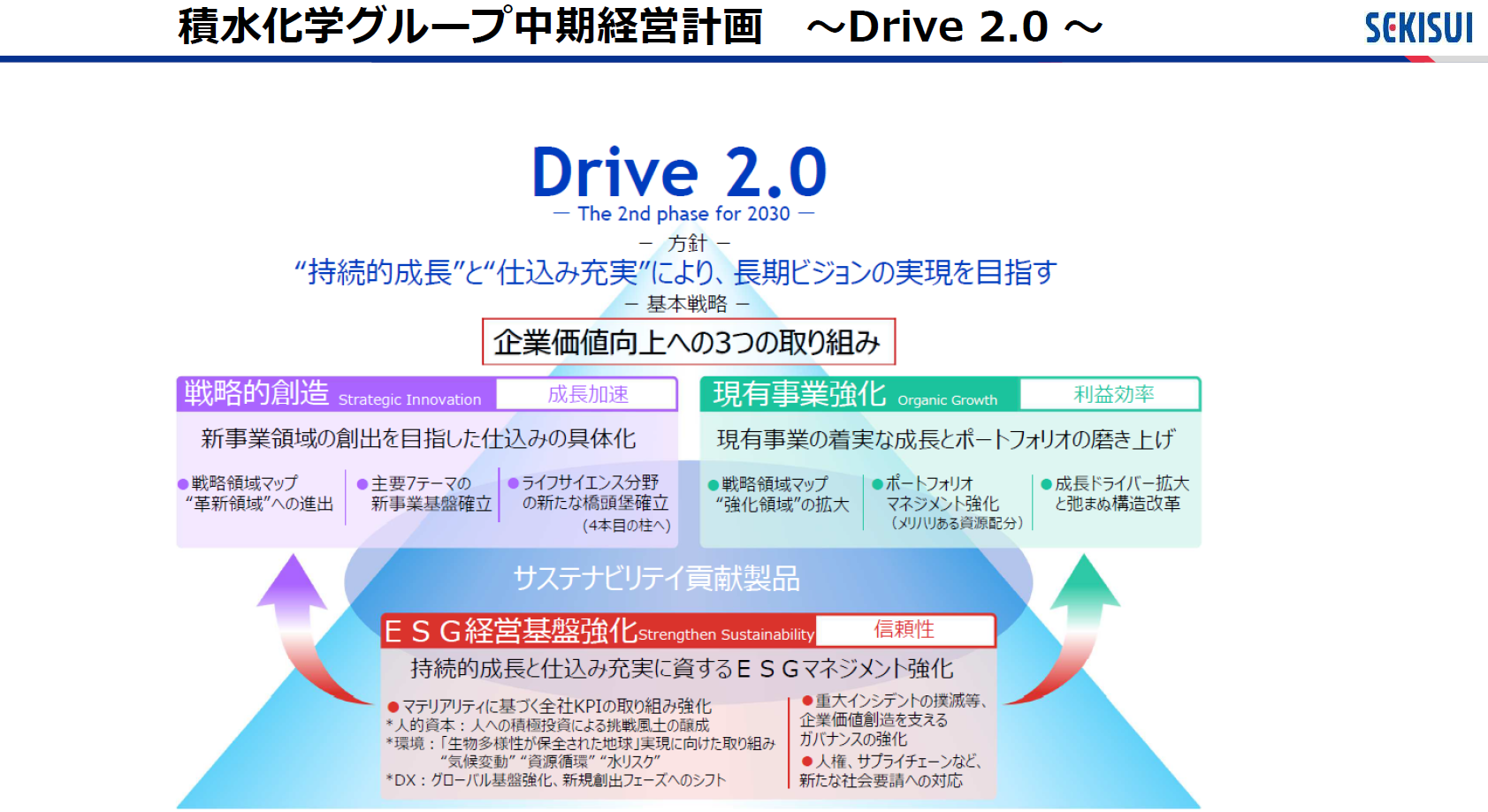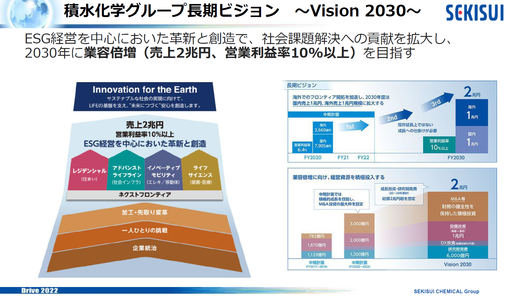 冒頭に積水化学工業高原氏から積水化学グループの長期ビジョン・中期経営計画から、DX投資を始める最初のきっかけをお話いただきました。