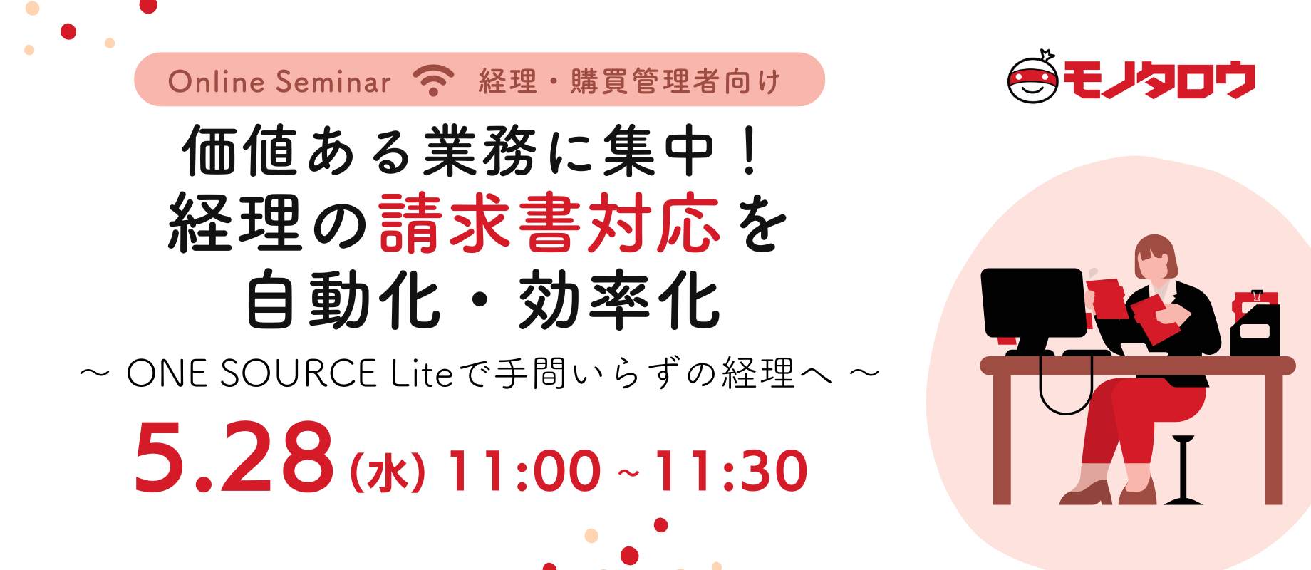 本ウェビナーでは、これらの課題を解決し、経理業務を劇的に効率化するためのヒントを、購買管理システム「ONE SOURCE Lite」の活用事例を交えながら分かりやすくご紹介いたします。